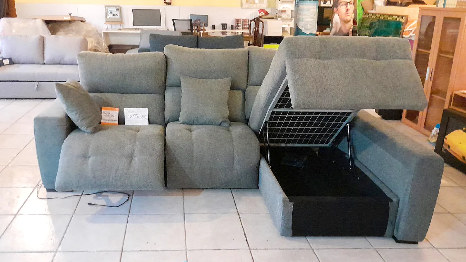 sofá ASH GREEN. 1375 €. > Plazas eléctricas. > Arcón abatible. > Chaise long intercambiable. Precio Lanzamiento 1375 € Dimensiones: 280×170 cm Comparte este/a entradaCompártelo Publícalo